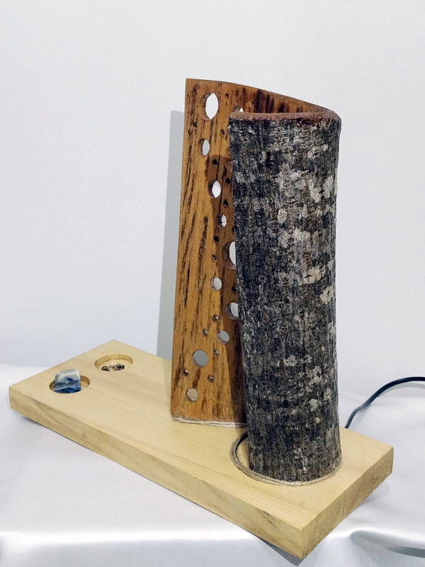 Ormanların gizemli atmosferini evlerinize taşıyan bu özel lamba, ıhlamur ağacının kabuğunun doğal dokusunu koruyor. Beyaz çamdan üretilen ayak kısmı, lambaya sağlamlık ve estetik bir görünüm katarken, kabuğun üzerindeki delikler, ormanın derinliklerini yansıtan ışık oyunları yaratıyor. Bu özel tasarım, evinizin her köşesinde kullanabileceğiniz şık ve dekoratif bir parça.